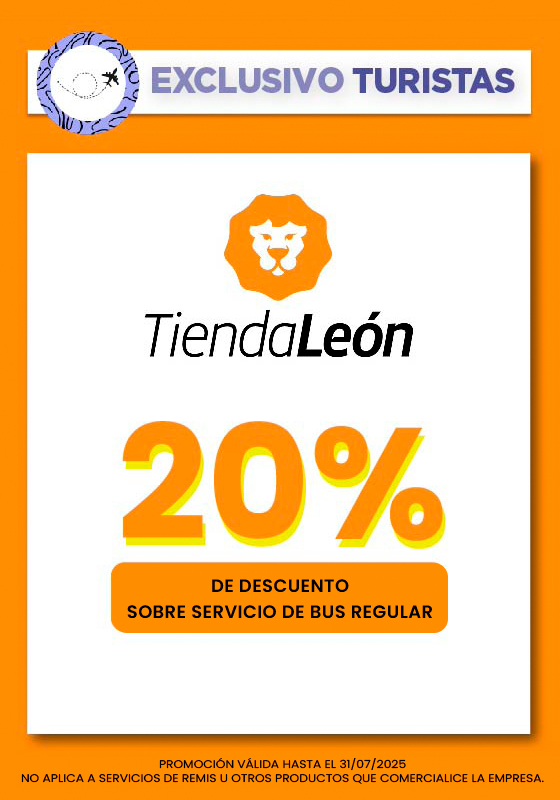 PROMOCIÓN VALIDA DESDE EL 1º AGOSTO DE 2025 HASTA EL 31 ENERO DE 2026, EXCLUSIVO PARA CLIENTES QUE PRESENTEN EL TICKET DEL BUS TURISTICO. EL DESCUENTO NO ES ACUMULATIVO CON PROMOCIONES BANCARIAS, NI PROMOCIONES ESPECIFICAS DE LA MARCA O PRODUCTOS EN LIQUIDACIÓN. EL CLIENTE BUS TURISTICO DEBERÁ PRESENTAR SU TICKET EN EL STAND DE ATENCIÓN AL CLIENTE DONDE RECIBIRÁ LA TARJETA DE DESCUENTOS PARA ACCEDER A LOS BENEFICIOS VIGENTES PUBLICADOS EN LA SECCION DESCUENTOS.