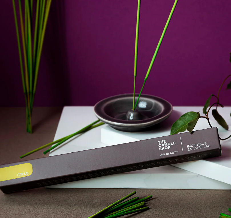 Porta incienso de cerámica con varillas aromáticas en caja por 30 unidades.