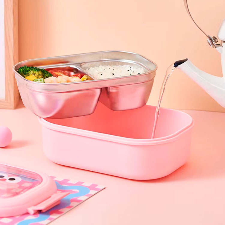 Una lunchera Box Friendly doble con divisiones de cierre hermético para niño. Medidas 22 x 14 x 7 cm